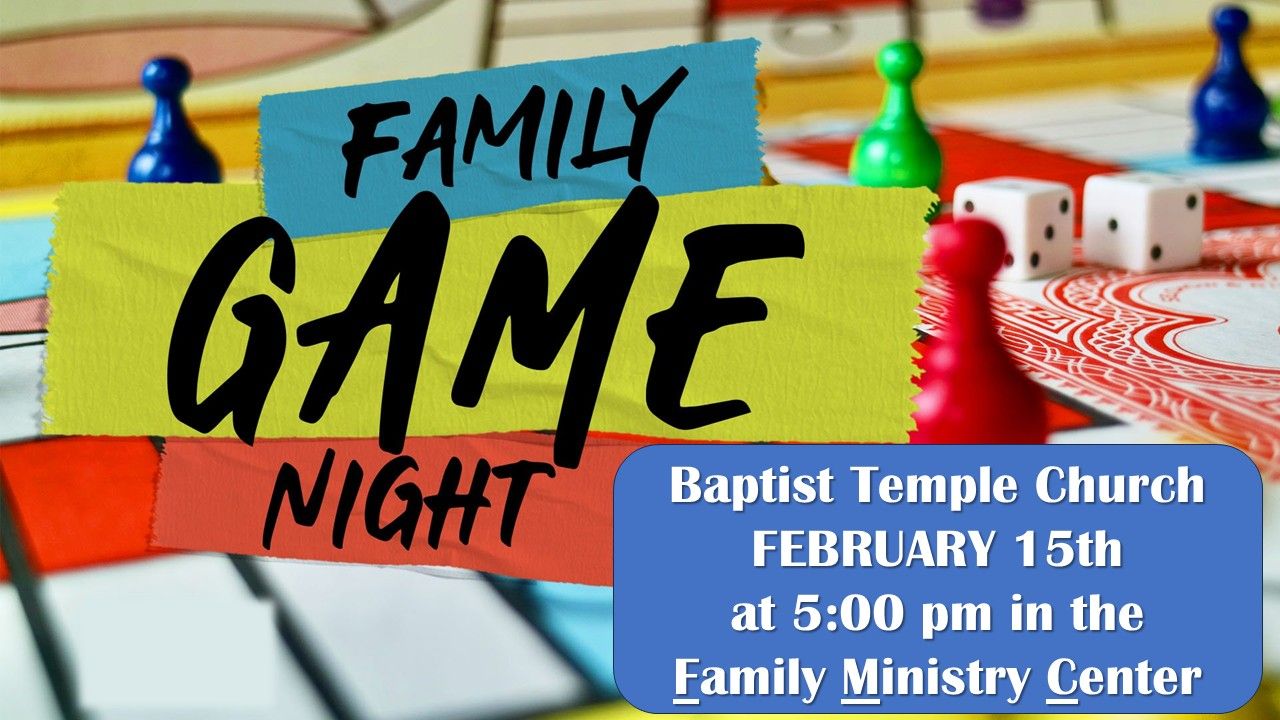 This event will happen right after our Ministry Conference (Church Business Meeting). We will be playing board games and having snacks. Open to all of our friends and family, and for all ages.